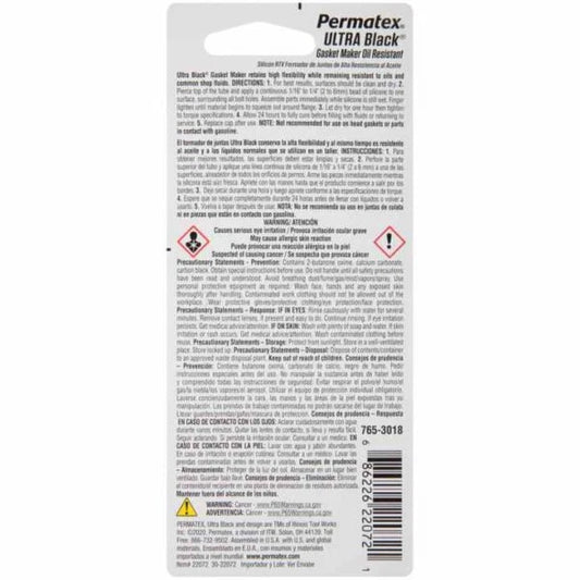 Permatex 22072 Ultra Black Maximum Oil Resistance RTV Silicone Gasket Maker .5oz